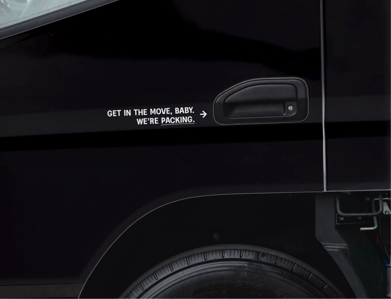 The moving industry is a hyper-competitive and saturated market in which consumers typically select a vendor based on price and Yelp reviews. To stand out from the medley of generic competitors, we built a premium, modern, and rebellious brand that uses edgy humor to grab attention and speak to universal complaints about the difficulty of moving. Our challenge was immense, as few industries are as staid as moving. So our goal was to disrupt, shock, and capture attention quickly and charismatically. To do so, we sought to move people with humor, positioning ourselves as the attitude to stressful moving by using culturally-savvy branding, copywriting, and outdoor campaigns to grab consumers’ attention and hold on for dear life until consumers laugh, chuckle, or at least smirk. Honestly, consumers better at least smirk. Because if they don’t smirk, and all our efforts were wasted, we’re going to be really petty. And we just want you to know that we, like, really want them to at least smirk. So consumers, just smirk, alright. Thank you.